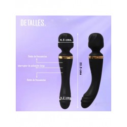 Vibrador masajeador USB con dos zonas de estimulación, cabeza texturizada y diseño curvo para un masaje más preciso. Fabricado en material suave y seguro para la piel. Ofrece 10 modos de vibración, carga USB universal y ergonomía ideal para uso personal o en pareja.